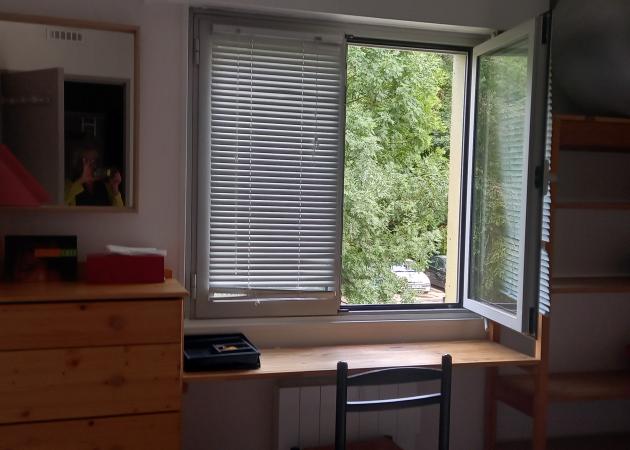 espaces verts. local a velo. chambre 10.50 m2 bonne literie. coin bureau nombreux rangements. cuisine salle d eau, sejour terrasse a partager.fibre.clim.