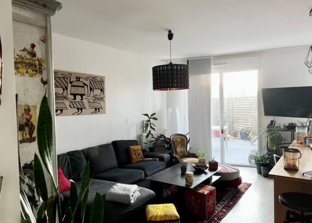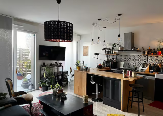 La déco est sympathique et cosy, quartier agréable proche du centre ville, il y fait bon vivre. La chambre lumineuse et donne sur la grande terrasse et le jardin de la résidence.