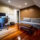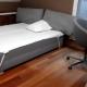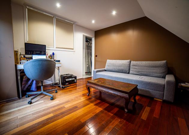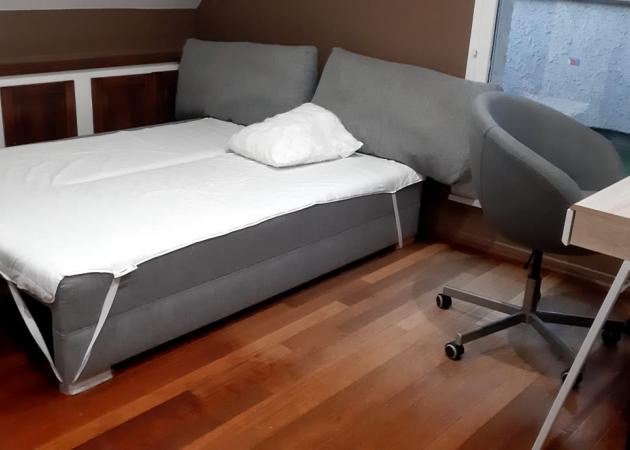 Chambre louée : chambre de 12,29 m², équipée d'un canapé lit, linge de lit, dressing, bureau.