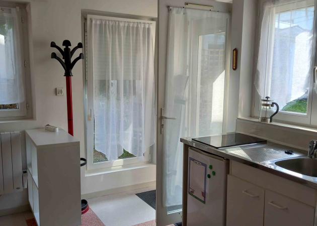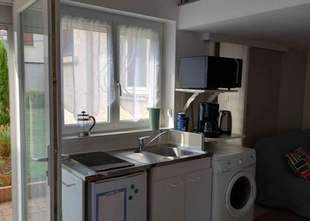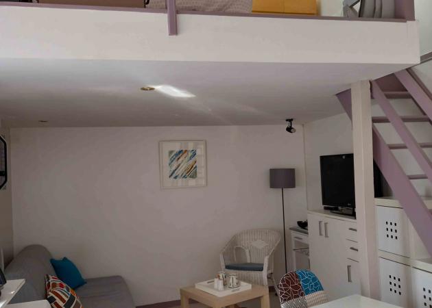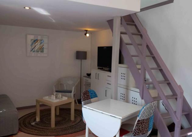 Studio 27 m2 avec chambre en mezzanine. Salon avec télévision. Cuisine équipée et lave linge. Salle de douche et toilettes. Bouilloire cafetière et vaisselle à disposition.