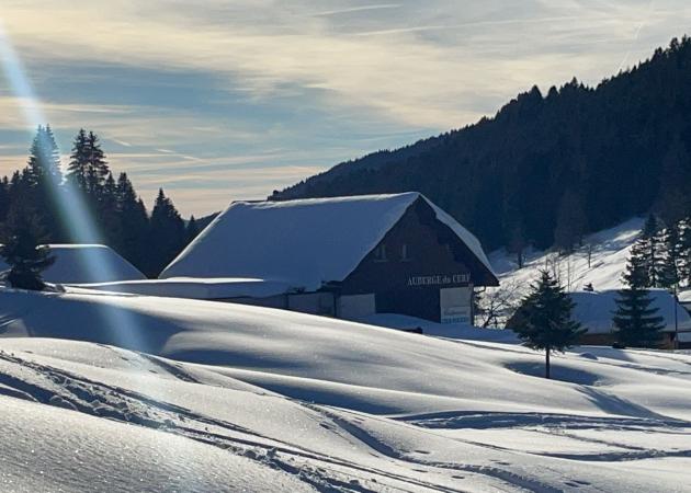 Départ et retour à ski, au pied du chalet.