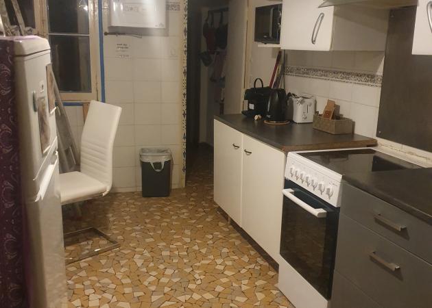 Cuisine, salle de bain, entrée independante et machine a laver casiment privative sur un appartement de 100 mettre carrés au total.