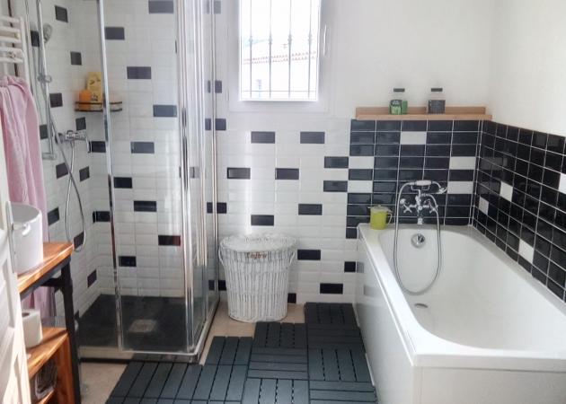 Vous disposez d’une salle de bain semi-privative avec double vasques, douche, baignoire, WC.