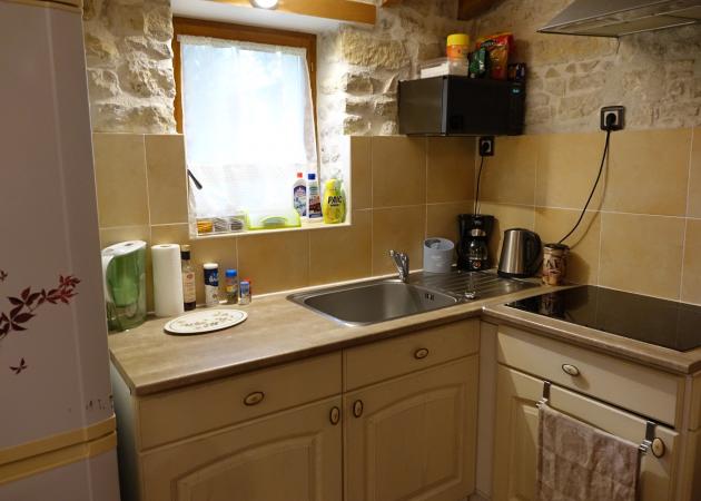 Grande cuisine équipée partagée avec d'éventuels colocataires présents dans la période.