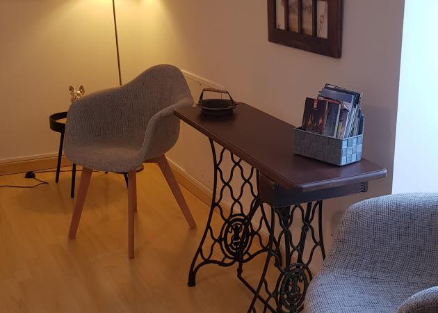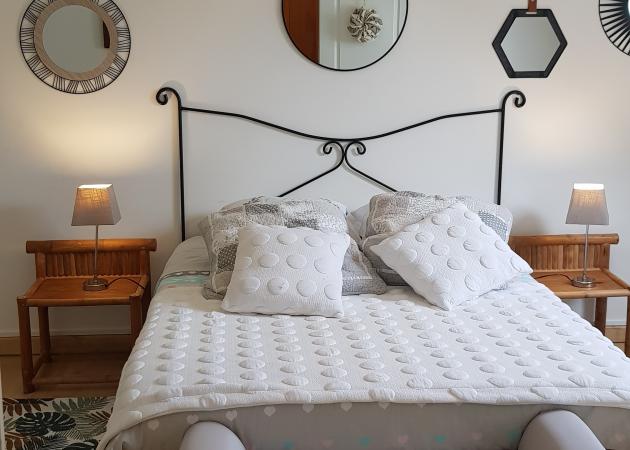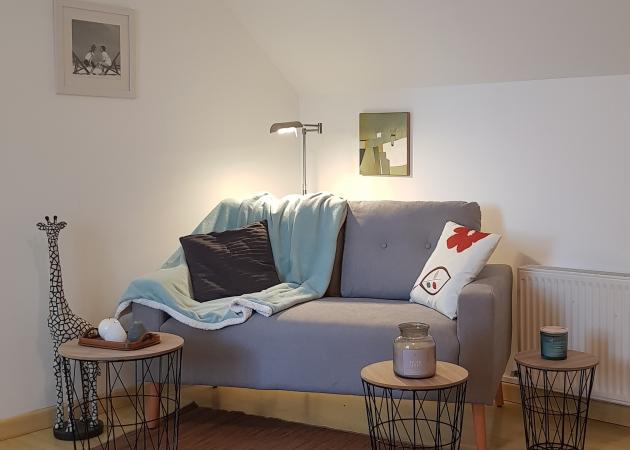 Lit double, coin bureau, armoire, machine à café et bouilloire. Linge de lit fourni.