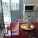 1 Grand lit, baie vitrée sur balcon, kichenette évier micro-onde plaque électrique bouilloire réfrigérateur, vaisselle. À part: douche cabine 60x60, WC électrique sani broyeur, petit lavabo. Couette, housse, oreillers, draps serviettes fournis. Sèche-cheveux, fer à repasser, étendoir à linge. Pas de lave-linge ni de télévision. Wi-Fi gratuit. Table chaises.