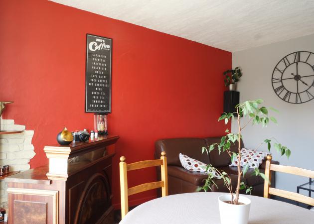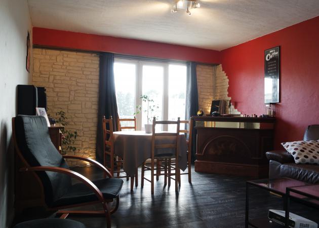 La chambre à louer fait 11m2 est est meublée d'un canapé-lit confortable, d'une table, d'un meuble de chevet et d'une télévision. Pour ranger vos affaires, vous trouverez un grand placard avec penderie. La salle de bain est juste à côté de la chambre.