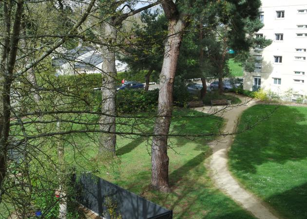 L'appartement est orienté plein sud et est situé au sein d'une résidence calme, la chambre donne sur des espaces verts.