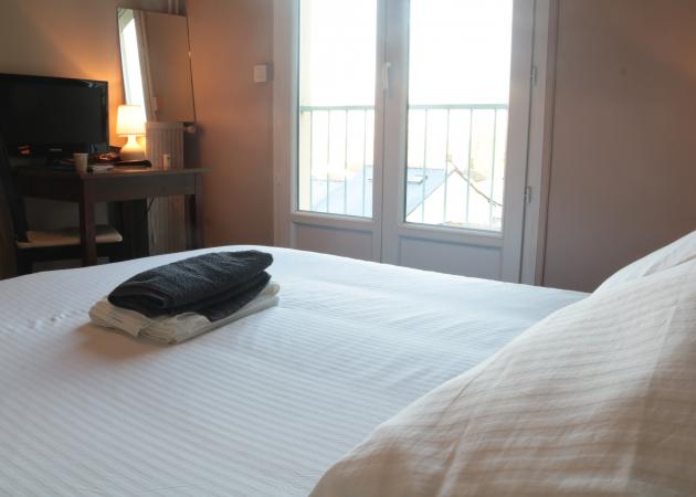 La chambre est lumineuse et calme et équipée de volets électriques.