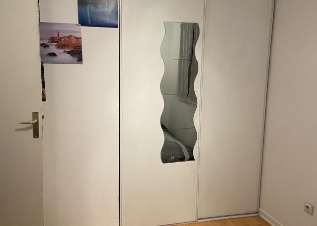 et une deuxième chambre équipé d'un placard intégré, une armoire , un lit gonflable ( c'est pour cela que le prix est faible sur cette location qui n'est disponible que jusqu'à avril) pas de place de parking disponible mais dans la rue aux alentours