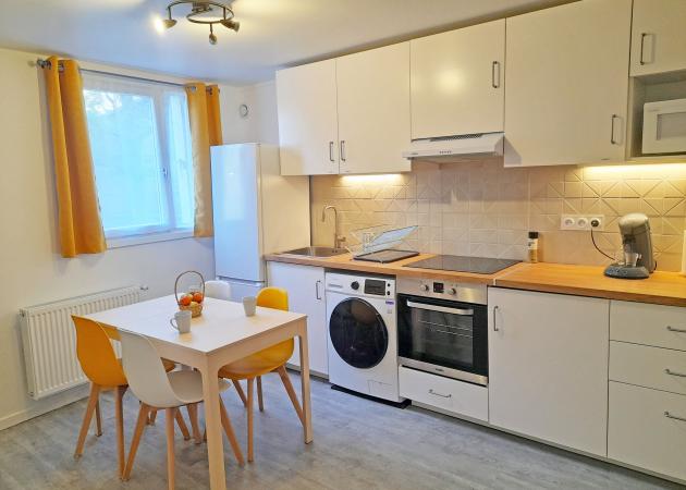 - TV écran plat, canapé, Table 4 chaises, Réfrigérateur/Congélateur, Lave linge/Séchant, cuisine totalement équipé, Four, Micro-onde, vaisselle fournie, fer à repasser , aspirateur