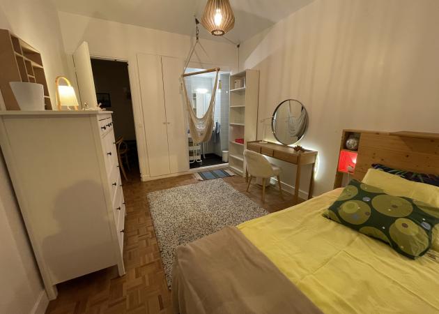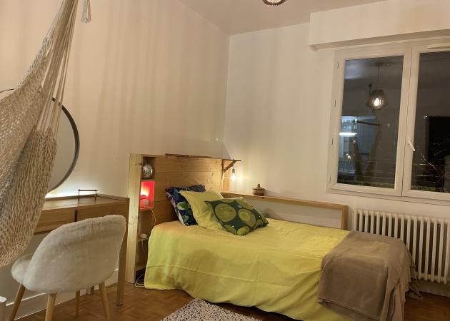 Chambre très lumineuse exposée ouest et meublée avec soin. Cabinet de toilette avec lavabo dans la chambre. Lit 140 avec literie de qualité. Accès à la salle de bain principale.