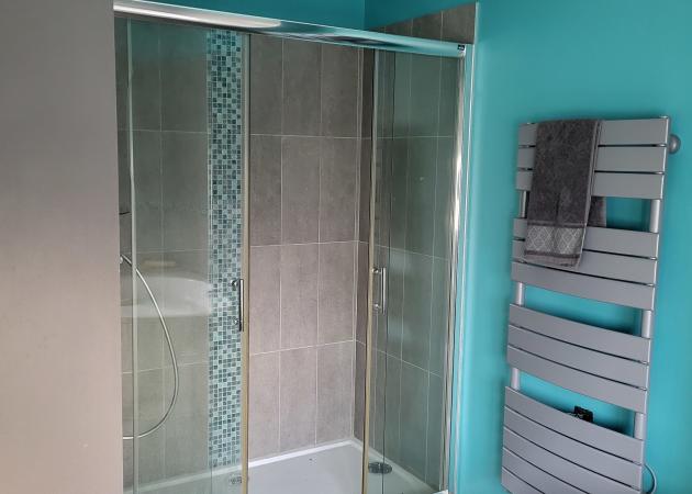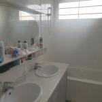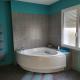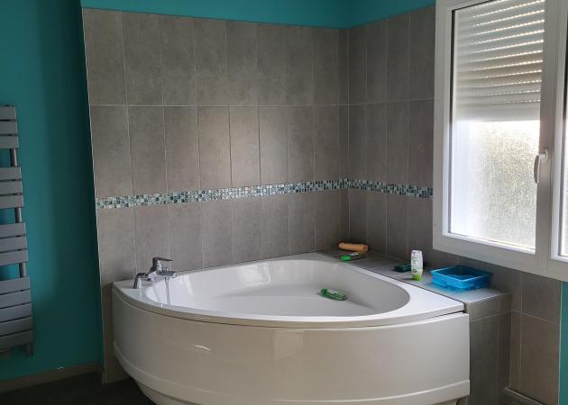 salle de bain privative avec grande baignoire et double vasques ainsi qu'une grande douche