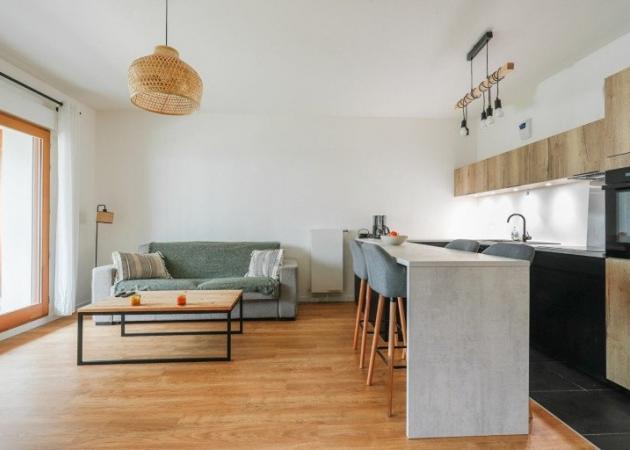 - Cuisine Américaine avec lave-vaisselle, four, réfrigérateur et micro-ondes
