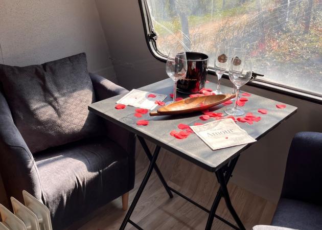 Elle est équipée d'un réchaud de camping, cafetière italienne, éclairages solaires en partie.