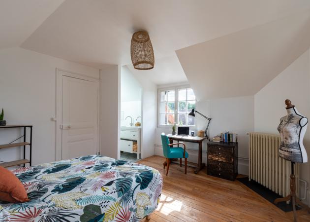 La maison de 300 M2 est séparée en 2 espaces : un espace de coworking au rez de chaussée de 140 M2 et chambre en colocation au 1et et second étages.