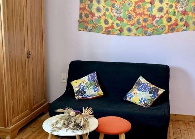 Mise à disposition du premier étage de la maison : deux chambres spacieuses (quatre couchages), coin salon et WC.