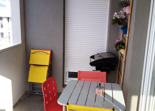 L'appartement est composé de 3 chambres, 1 salle de bain baignoire, toilettes et d'un grand salon cuisine ouverte avec une terrasse où vous pouvez fumer.