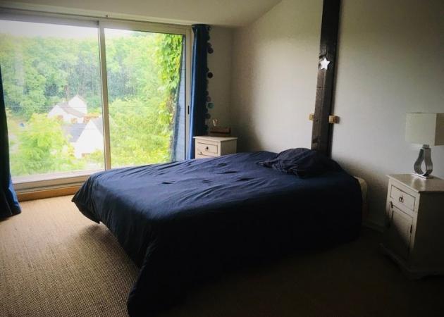 Chambre : Lit KIng Size. Salle de bain avec toilette sanibroyeur. Table d'appoint, commode.