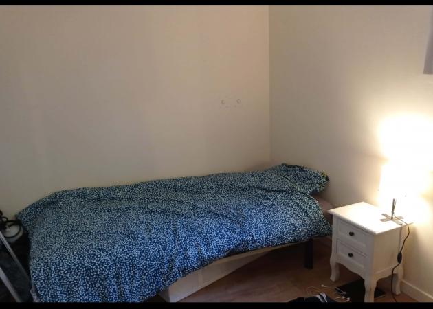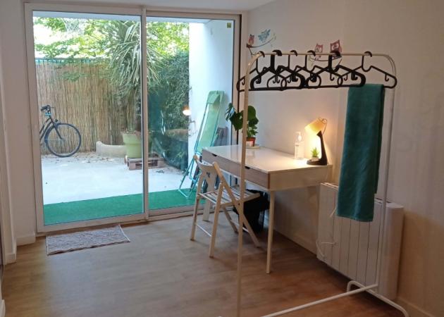 La chambre est au rez-de-chaussée de la maison et donne sur un petit jardin. Elle est au calme, dispose d'un lit simple, TV, Wifi, rangements, bureau, eau chaude, frigidaire, micro-ondes, WC.