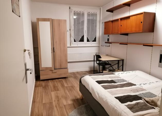 - 3 chambres Lumineuses(tout Neuf), Grand lit, Bureau avec sa chaise et une lampe, nombreux rangements + Penderie, Tableau blanc mural, corbeille linge & papier, fermeture à clé.