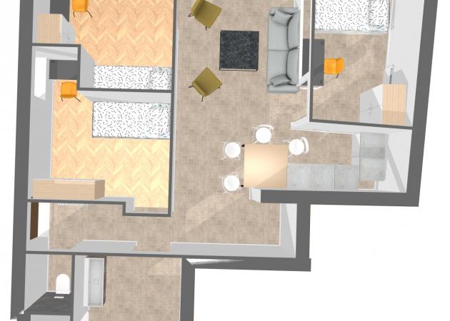 - Pièce à vivre de 22 m2, comprenant une cuisine équipée.