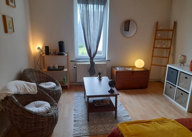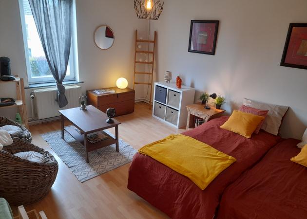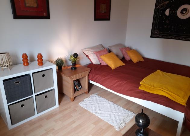 Je loue une grande chambre avec coin salon dans un cadre verdoyant et au calme.