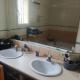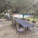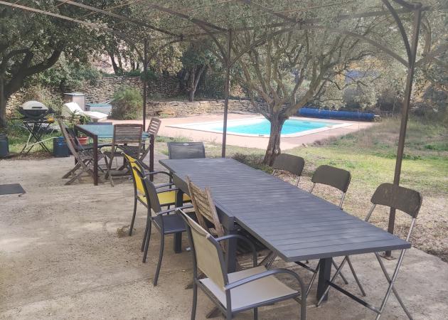 Dans une maison familiale sur un grand terrain avec terrasse et piscine.