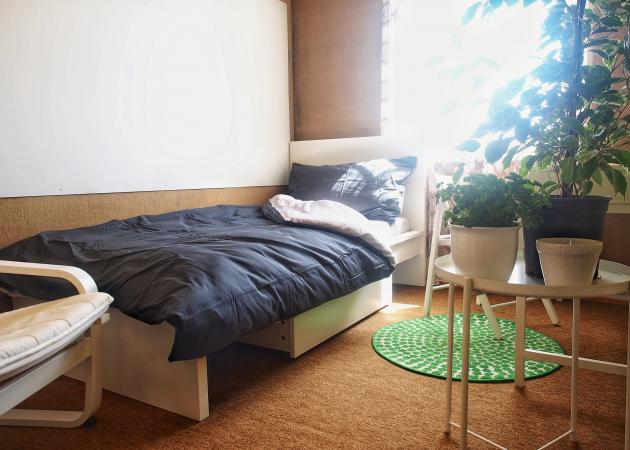 Chambre tranquille, meublée IKEA orientée Nord-Ouest avec vue sur les grands arbres: