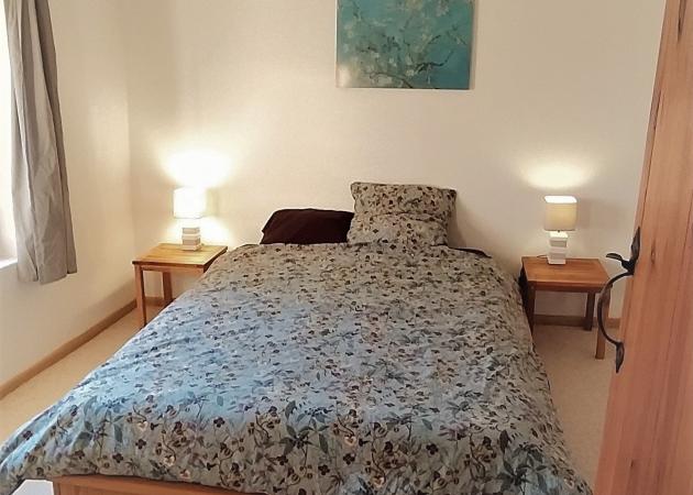 La chambre dispose d'un lit double, d'un portant à vêtements.
