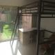 Mobilier dans la chambre :lit mezzanine, bureau, fauteuil, armoire.