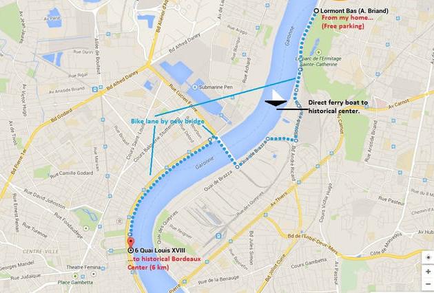 - Piste cyclable devant la porte jusqu'au centre de Bordeaux (4/7 km)