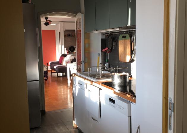 Accès à une cuisine partagée pour de la cuisine rapide et simple.Possibilité de faire une machine par semaine. Connexion internet ok. L appartement à une grande terrasse à laquelle vous pourrez avoir aussi accès pour vos repas mais que j utilise beaucoup aussi.