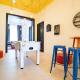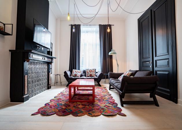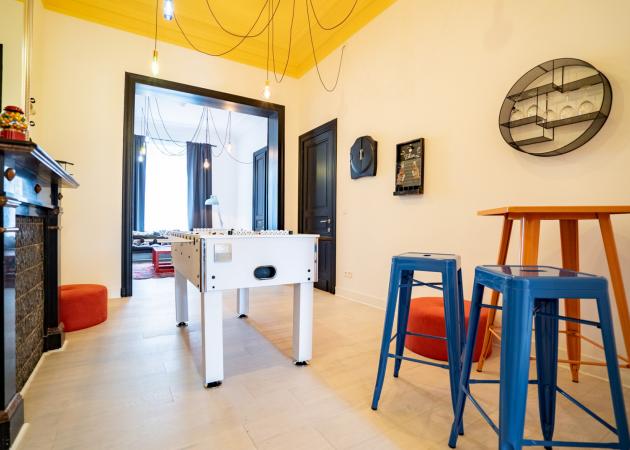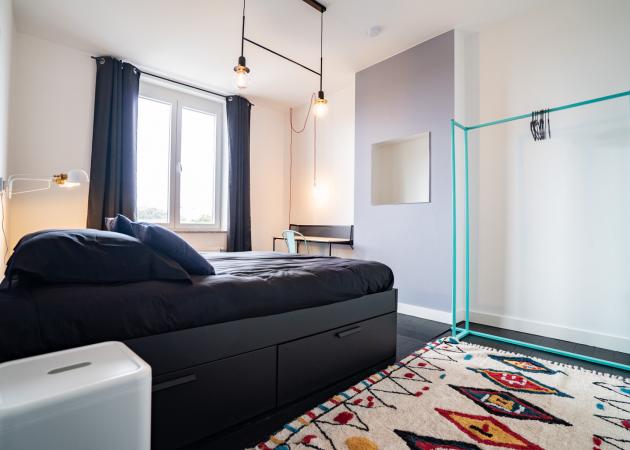 Petite maison au style industriel et coloré se situant entre l'Université Paul Pastur et le Palais des Beaux-Arts à Charleroi.