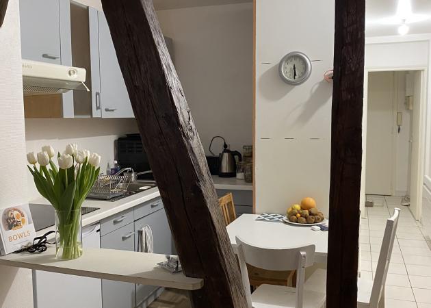 Appartement de charme avec cuisine toute équipée, balcon et baignoire. Une chambre avec lit double et un canapé lit deux places dans le salon.