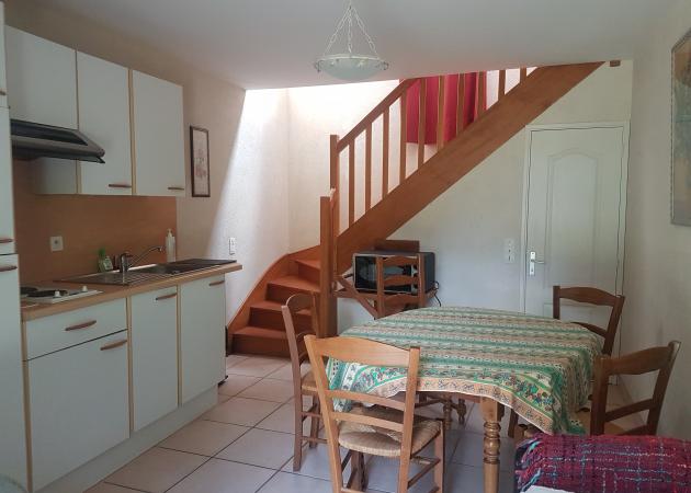 Le logement de 56 M2 se compose d'une petite pièce de vie avec cuisine table à manger une chambre au rez-de-chaussée avec salle d'eau avec [Coordonnées masquées]-C privé