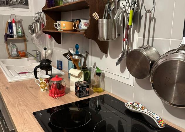 Salle de bain à partager, propre douche à l'italienne à partager, cuisine bien équipée. Toilettes séparées.