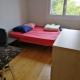 La chambre libre est meublée, lit et literie, bureau et commode.