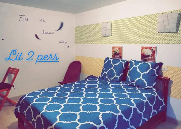 Un espace à louer de 35 mètres carrés doté d'une chambre de 14 mètres carrés une kitchenette équipée meublé et accessoirisée et d'une salle de douche avec WC intégré àcoller à la chambre.