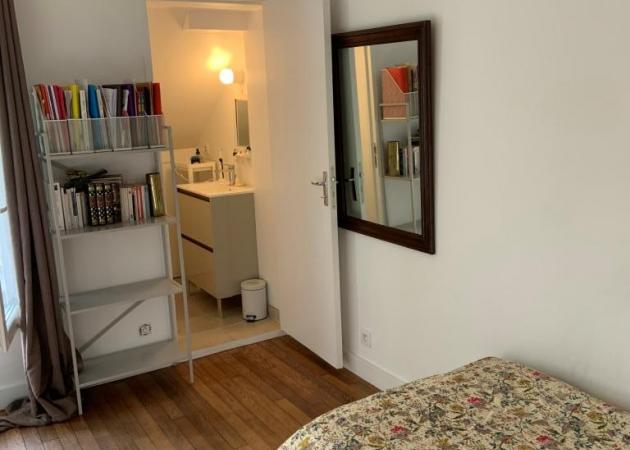 Au 1er étage calme, ensoleillée, elle bénéficie d’un cabinet de toilette indépendant avec lavabo et placards.