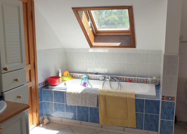 Une chambre dans une maison charmante où sont partagés : un jardin idylique plein sud, une salle de bain avec douche et baignoire, 2 wc, un salon avec poêle à bois, une salle à manger, une cuisine, une machine à laver, des caves, un espace pour vélo et une connexion internet.