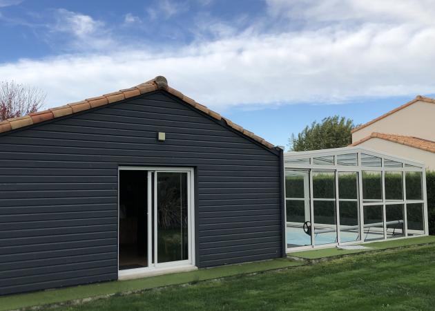 Nous vous proposons un espace de 25 m² qui peut accueillir 6 à 7 personnes. Nous offrons le petit déjeuner ainsi que l'accès à la piscine de la maison et à la salle de bains. Des commodités de transfert à proximité du site du Hellfest sont envisageables.