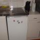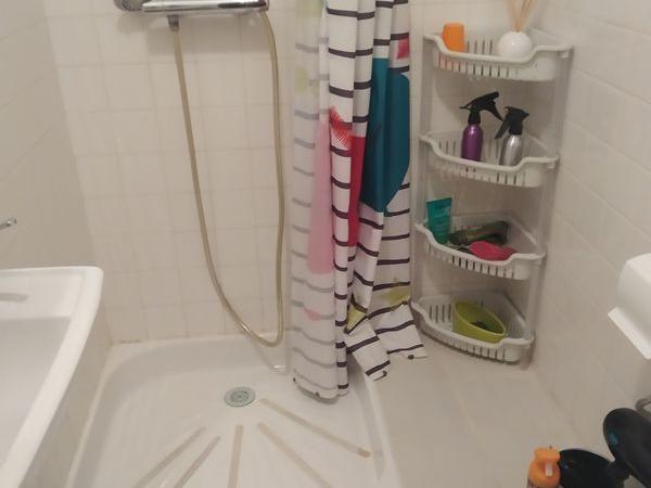 Cuisine partagée avec un second locataire mais 1 frigo par locataire. four, plaques induction, évier, table et chaises, micro ondes, couverts, assiettes, casseroles, bols, verres etc, mixeur, cafetières, bouilloire, toasteur, etc ... canapé et télévision.