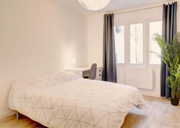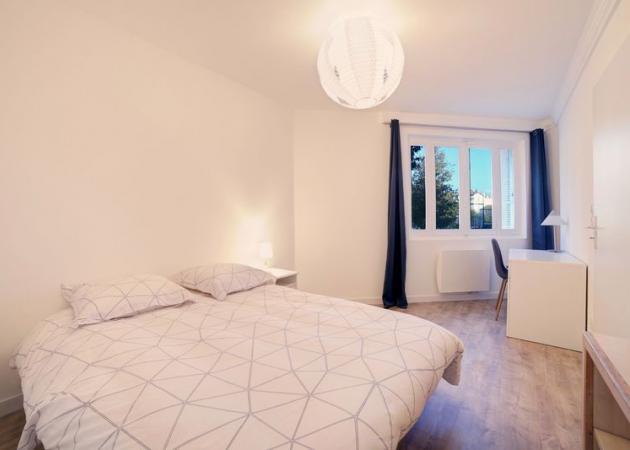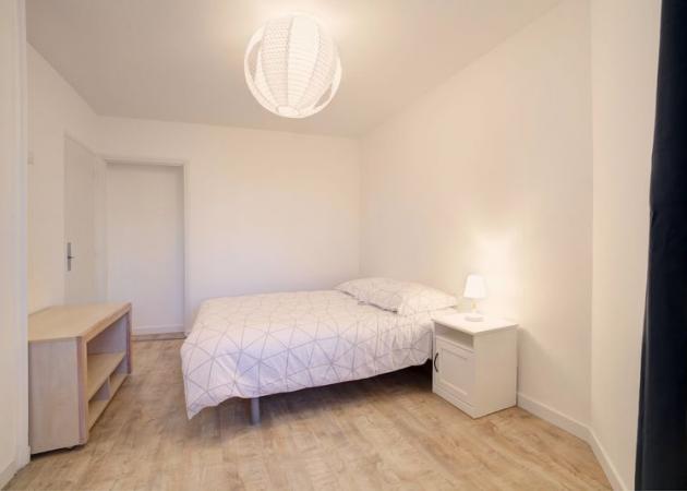 - Chambres avec chacune une literie de qualité + 1 dressing pour ranger vos affaires + 1 bureau de travail + linge de lit inclus + prises TV + rideaux occultant
