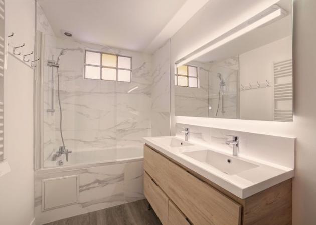 - 1 salle de bains moderne avec double vasque et 1 WC séparé de la salle d'eau
