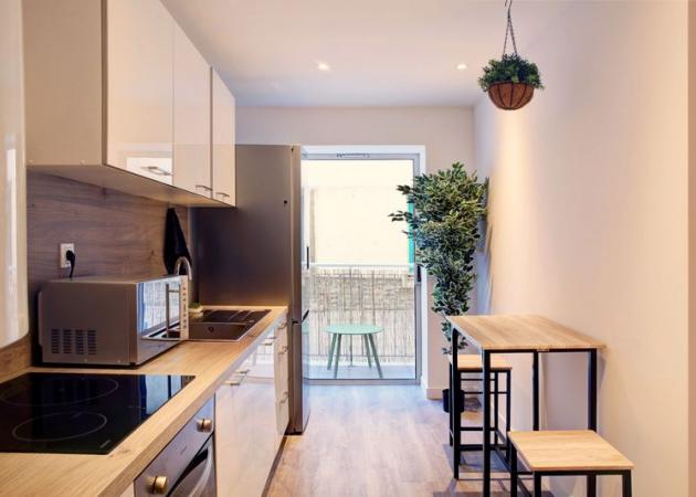 - Cuisine équipée moderne avec tout le matériel de cuisine et la vaisselle mis à disposition + four + plaque induction + lave-vaisselle + 1 grand frigidaire avec congélateur