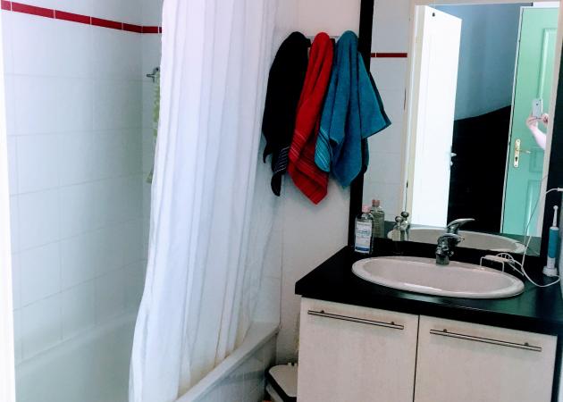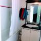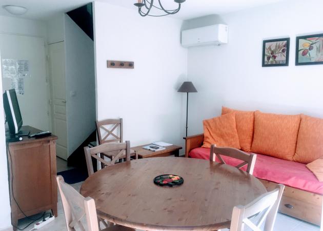 RDC : entrée, salon/salle à manger (table à manger, canapé gigogne 2 personnes, petite table, TV), coin cuisine (réfrigérateur, 2 plaques vitrocéram, mini-four/micro-ondes, lave-vaisselle, hotte, bouilloire, cafetière, vaisselle et ustensiles de cuisine), salle de bains (baignoire, lavabo, placard, sèche-cheveux), cagibi (planche et fer à repasser, étendoir, matériel ménage). A l'étage : 2 chambres (1 X 1 lit double, 1 X 2 lits simples jumeaux, lit parapluie bébé 0/3 ans disponible), WC séparés. Grands placards dans les chambres.