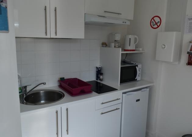 Lit 150 + TV Ecran plat 32 " avec la TNT. WIFI gratuit. Kitchenette avec vaisselles, casseroles, réfrigérateur top, cafetière, micro onde grill et plaque 2 foyers. Salle de Bain avec wc, douche et lave main. Parking gratuit .