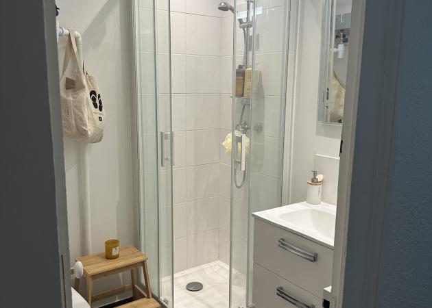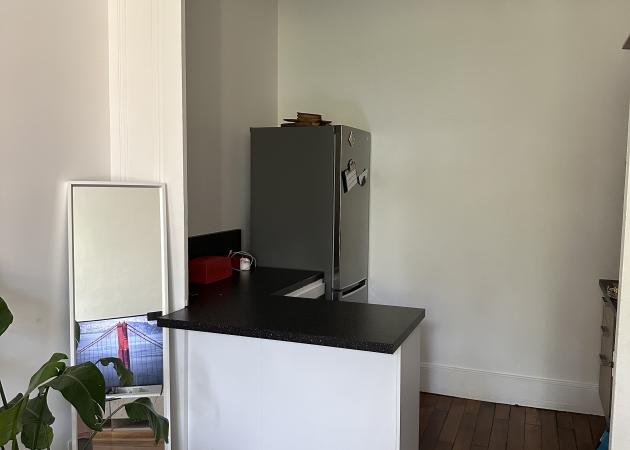 salon ouvert sur cuisine , une chambre a coucher , salle d'eau , immeuble calme , commerce juste en bas de l'immeuble , à 5 minute de la gare Perrache .