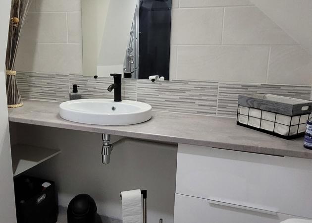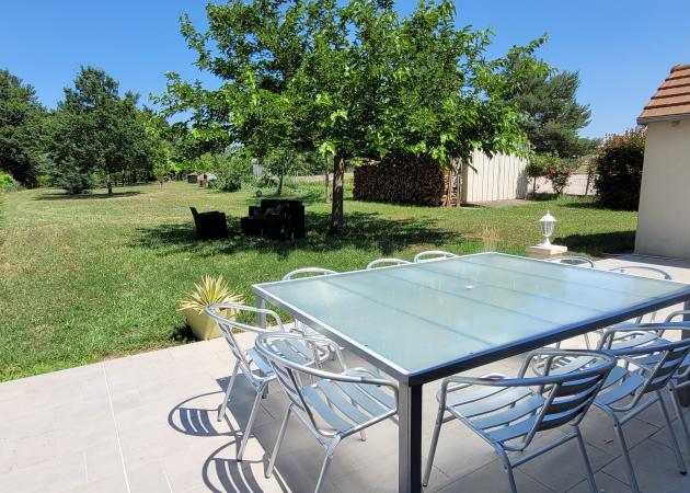 A l'arrière de la maison, une terrasse avec salon de jardin ainsi que barbecue sont à votre disposition.
